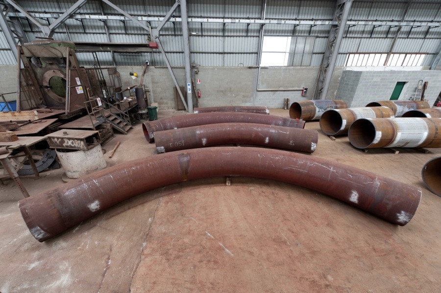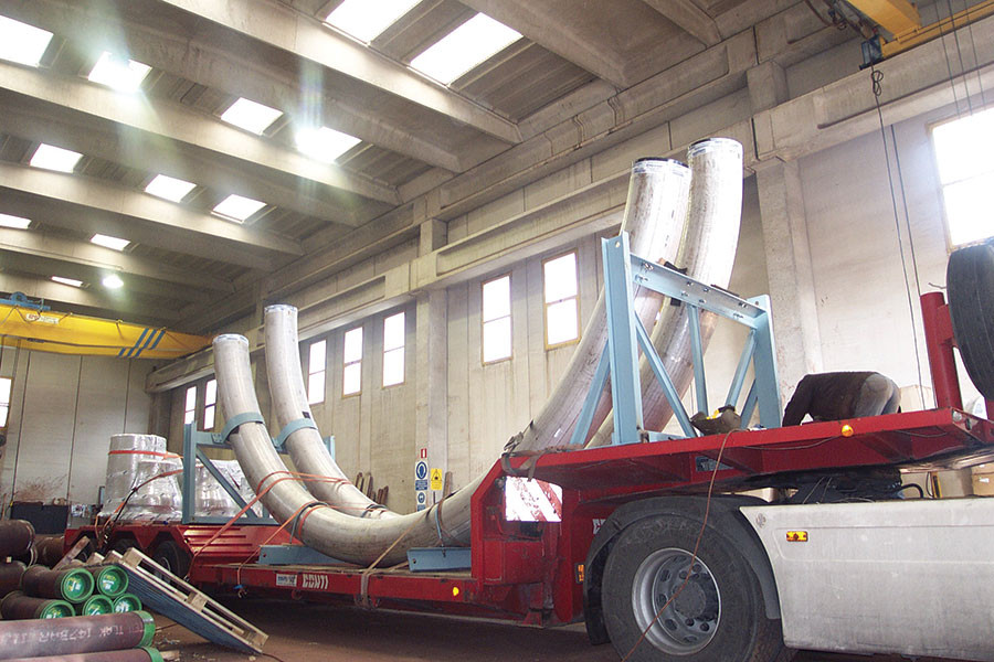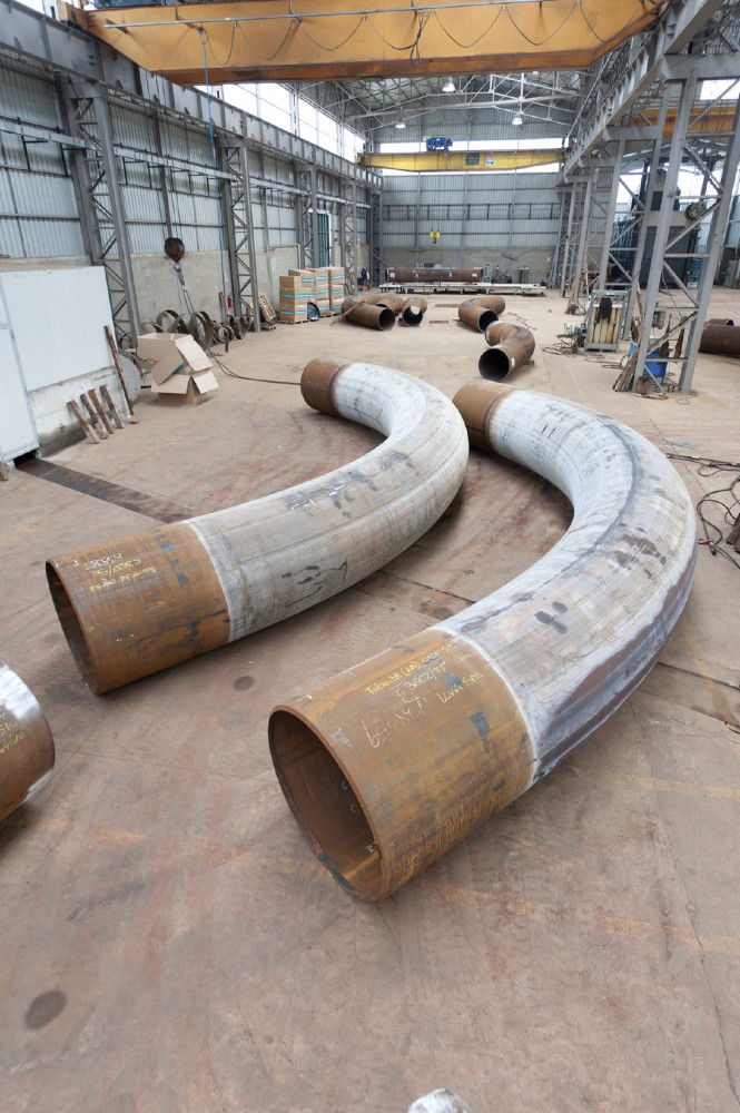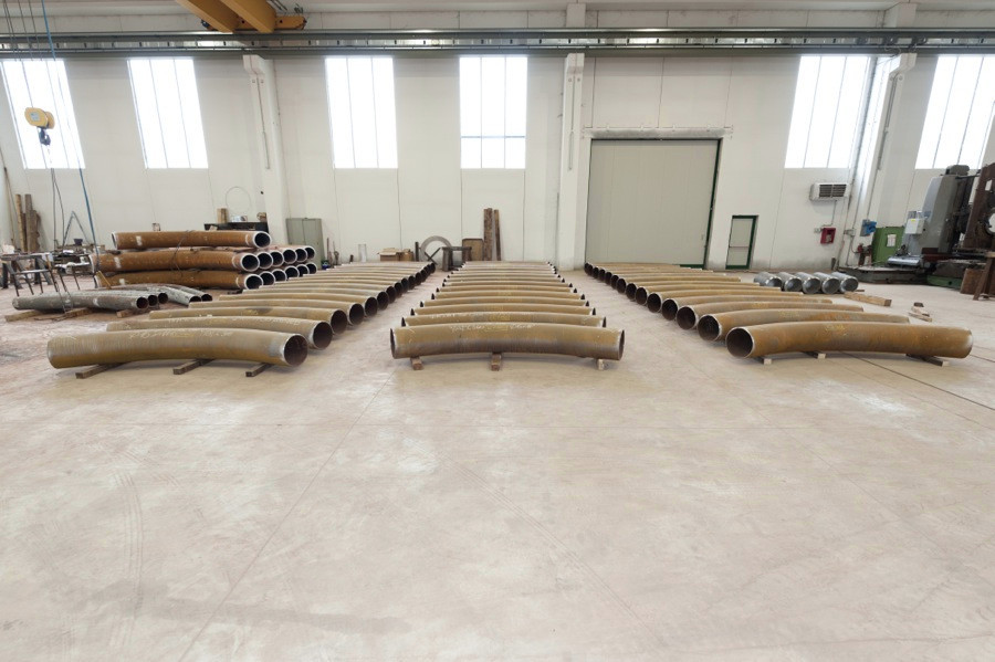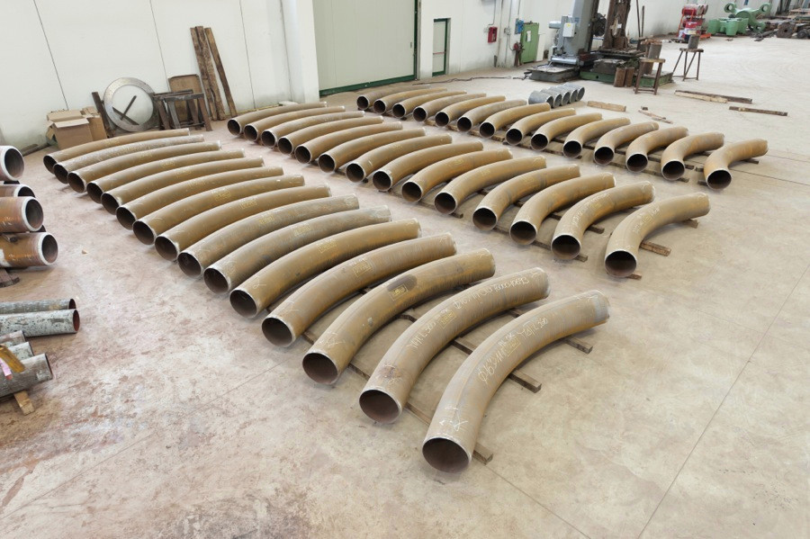 L'azienda può produrre bend in acciaio al carbonio, acciaio legato, acciaio inossidabile, duplex e titanio, saldati (SAW o ERW) e non saldati, con diametri da 2”a 60".