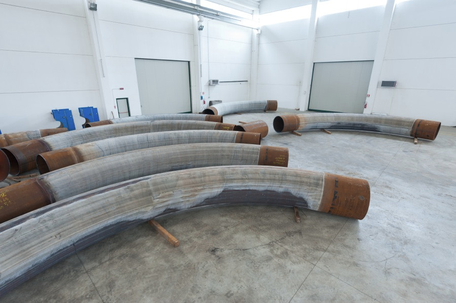 Tectubi Raccordi Bending Division produce curve ad ampio raggio e bend claddate attraverso due processi di produzione, uno a caldo (induzione) e uno a freddo (piegatura).